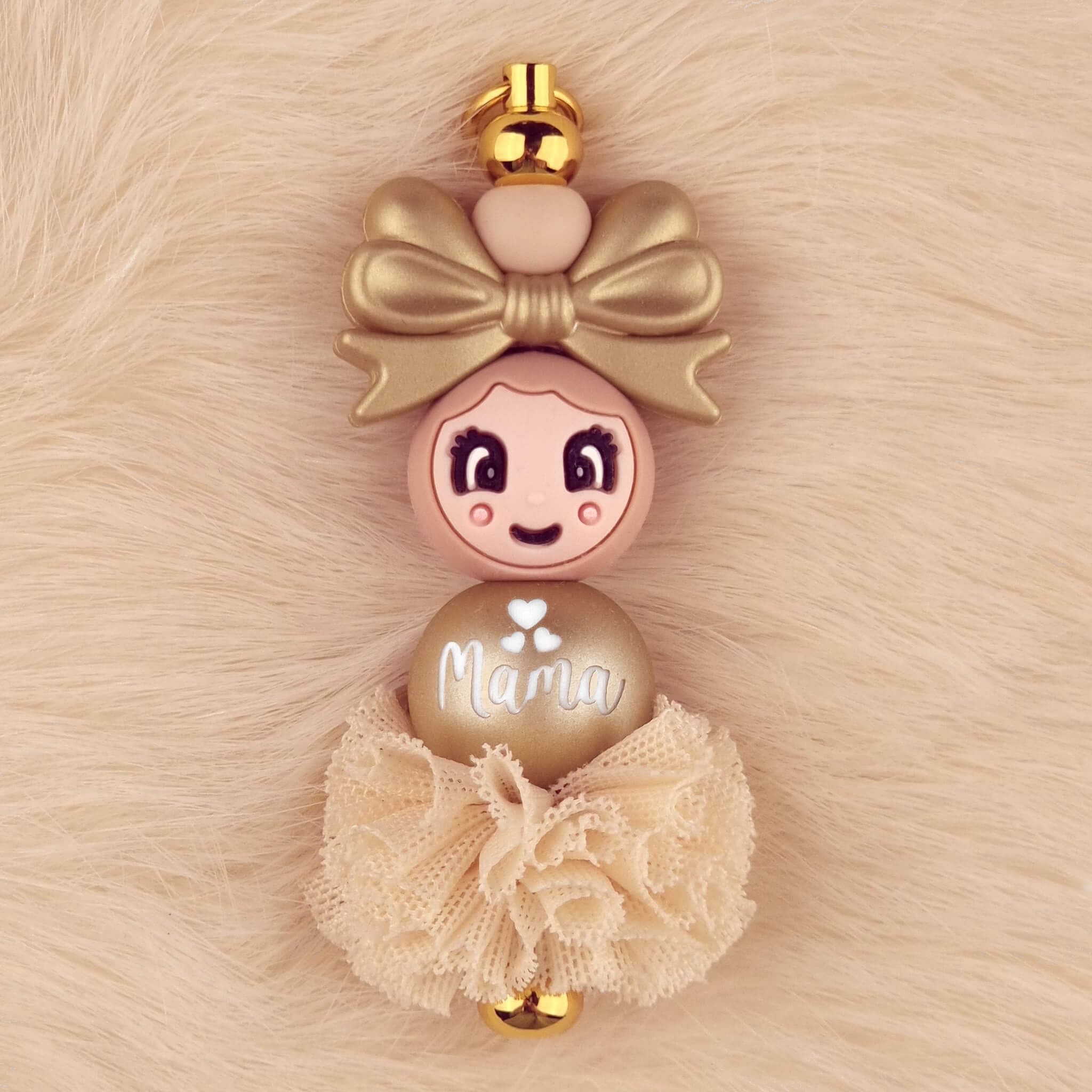 DIY Siliconen Kralen Pakket – Gelukspoppetje Mama – Hanger – Golden Nugget / Wood