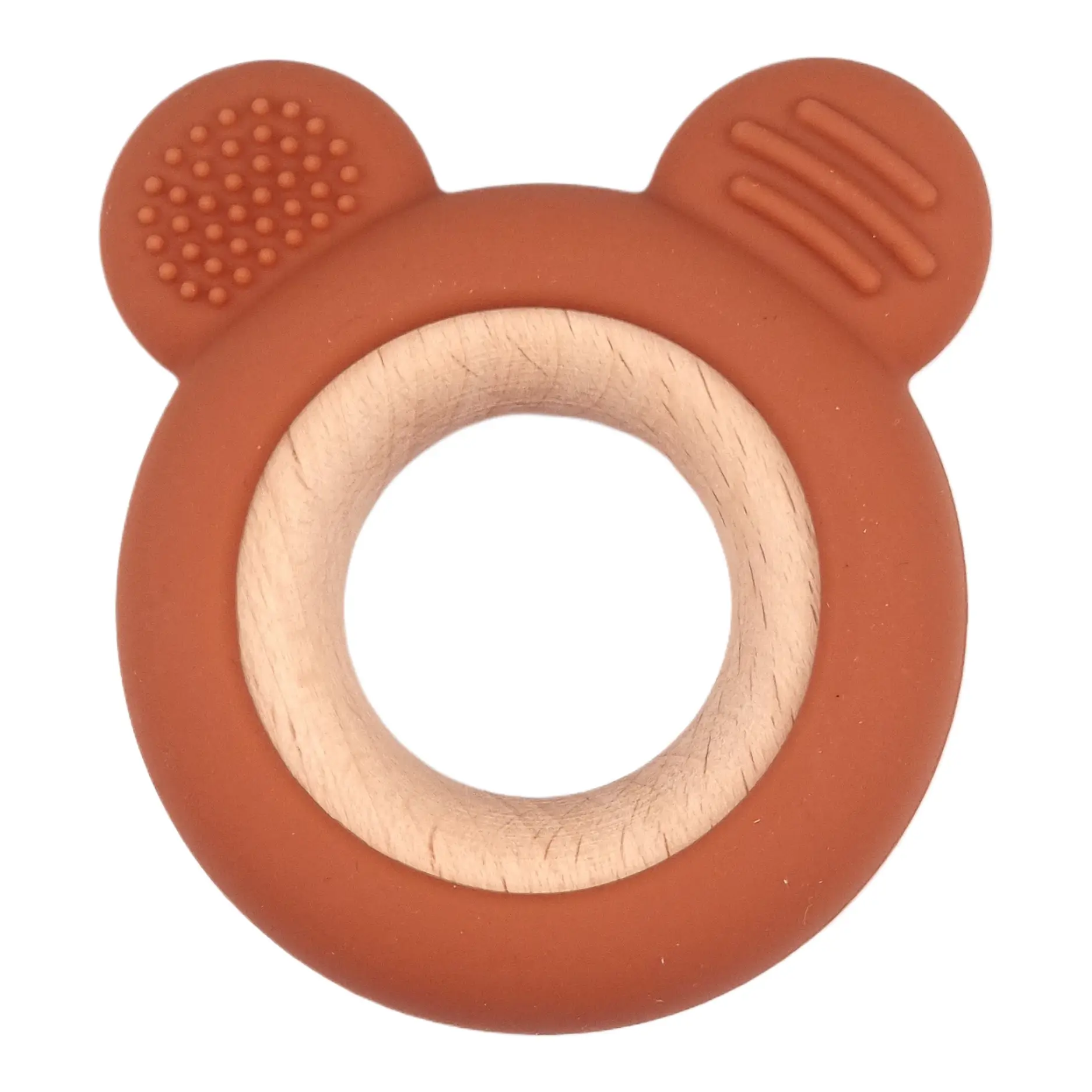 Diese Beißfigur passt perfekt zu unseren Buchenholzperlen, Ringen und Amber-Silikonperlen.