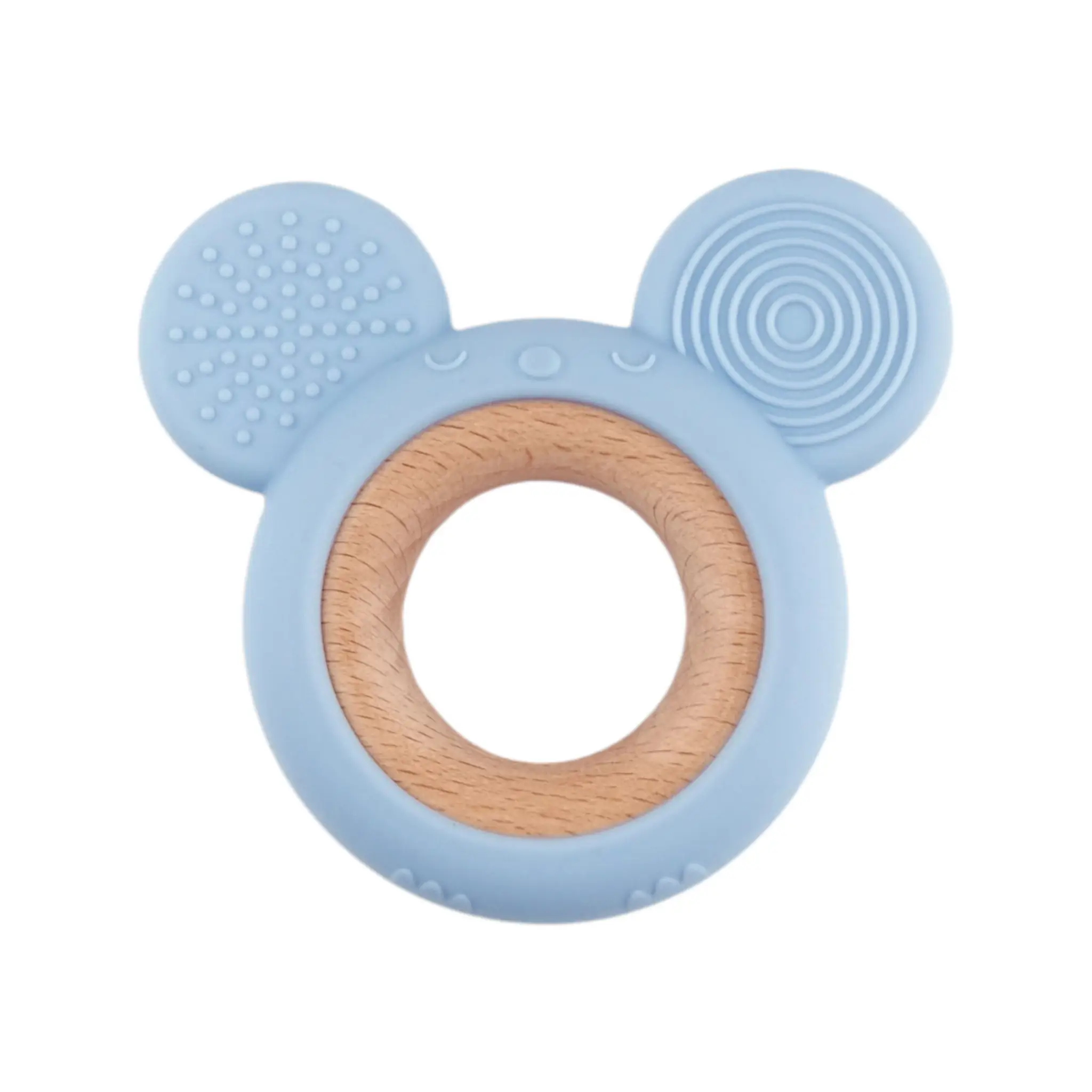 Spielfigur zum Zahnen – Silikon und Holz – Maus – Hellgrau Petrol