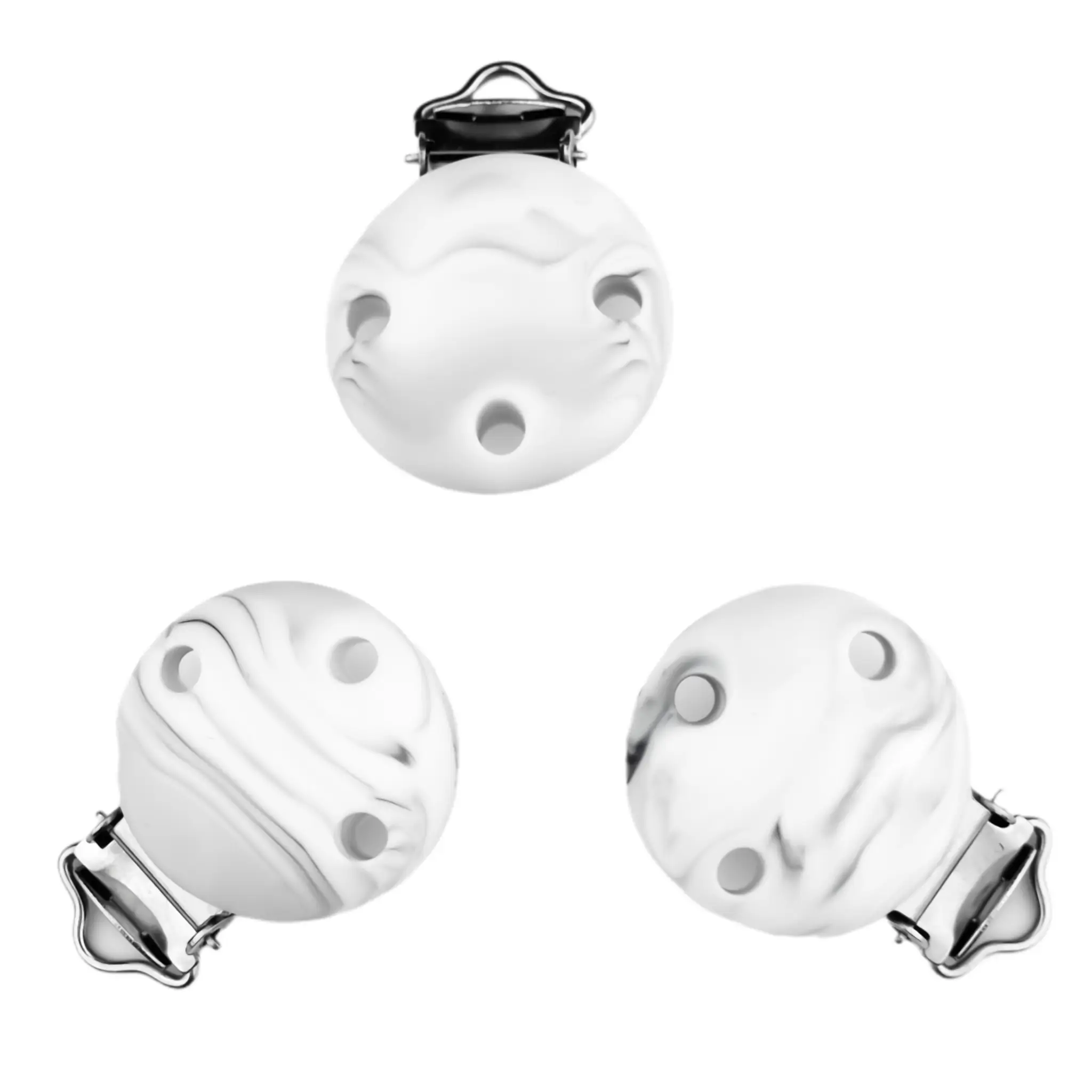 Startseite » Großhandel mit Silikonperlen – Business und Consumer » Schnullerclip aus Silikon – Klein – 30 mm – Marmor Schwarz Weiß