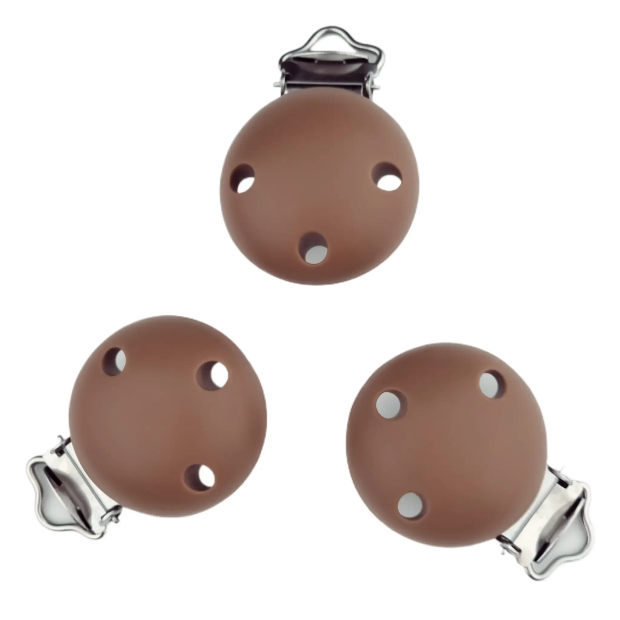 Startseite » Großhandel mit Silikonperlen – Business und Consumer » Schnullerclip Silikon – Klein – 30 mm – Brownie