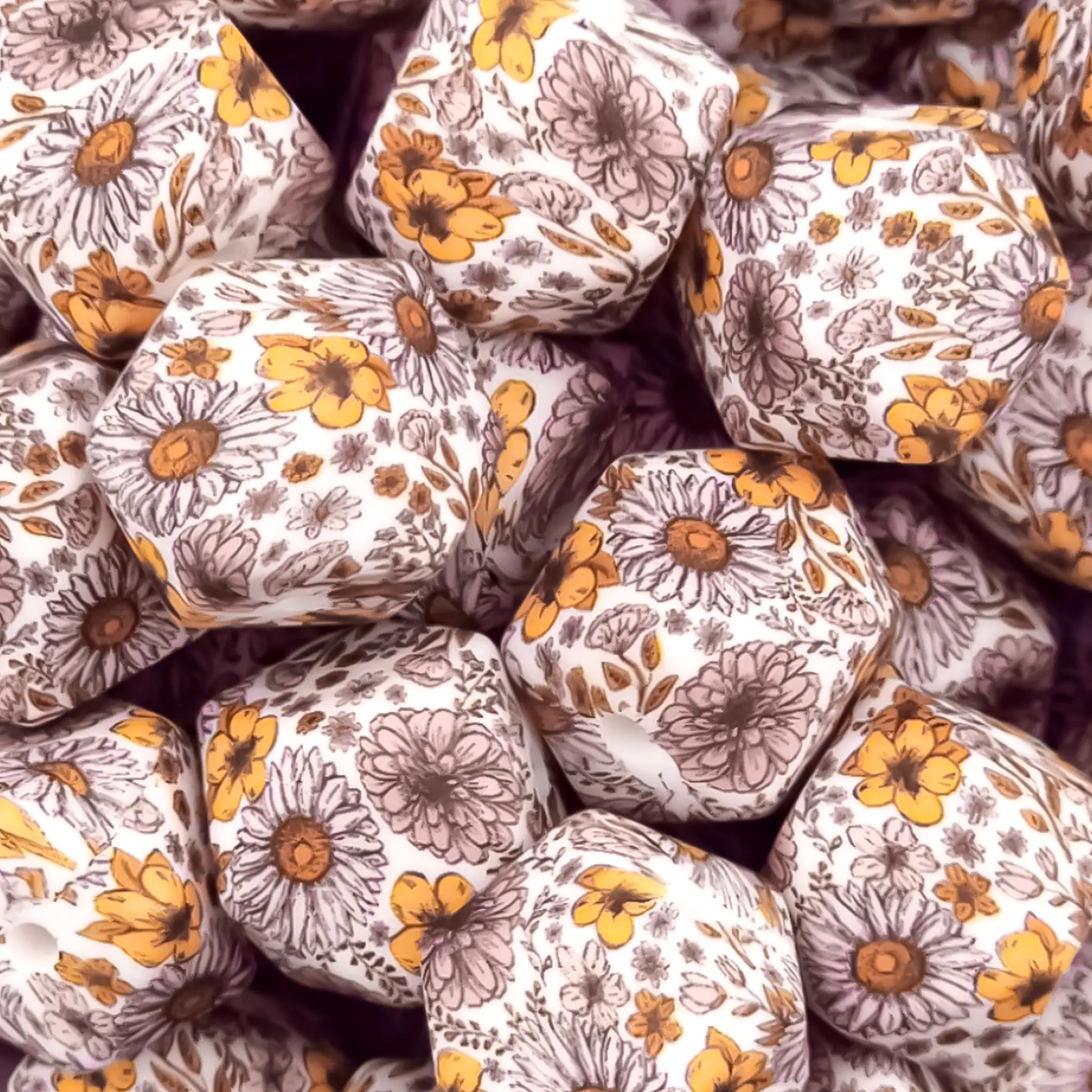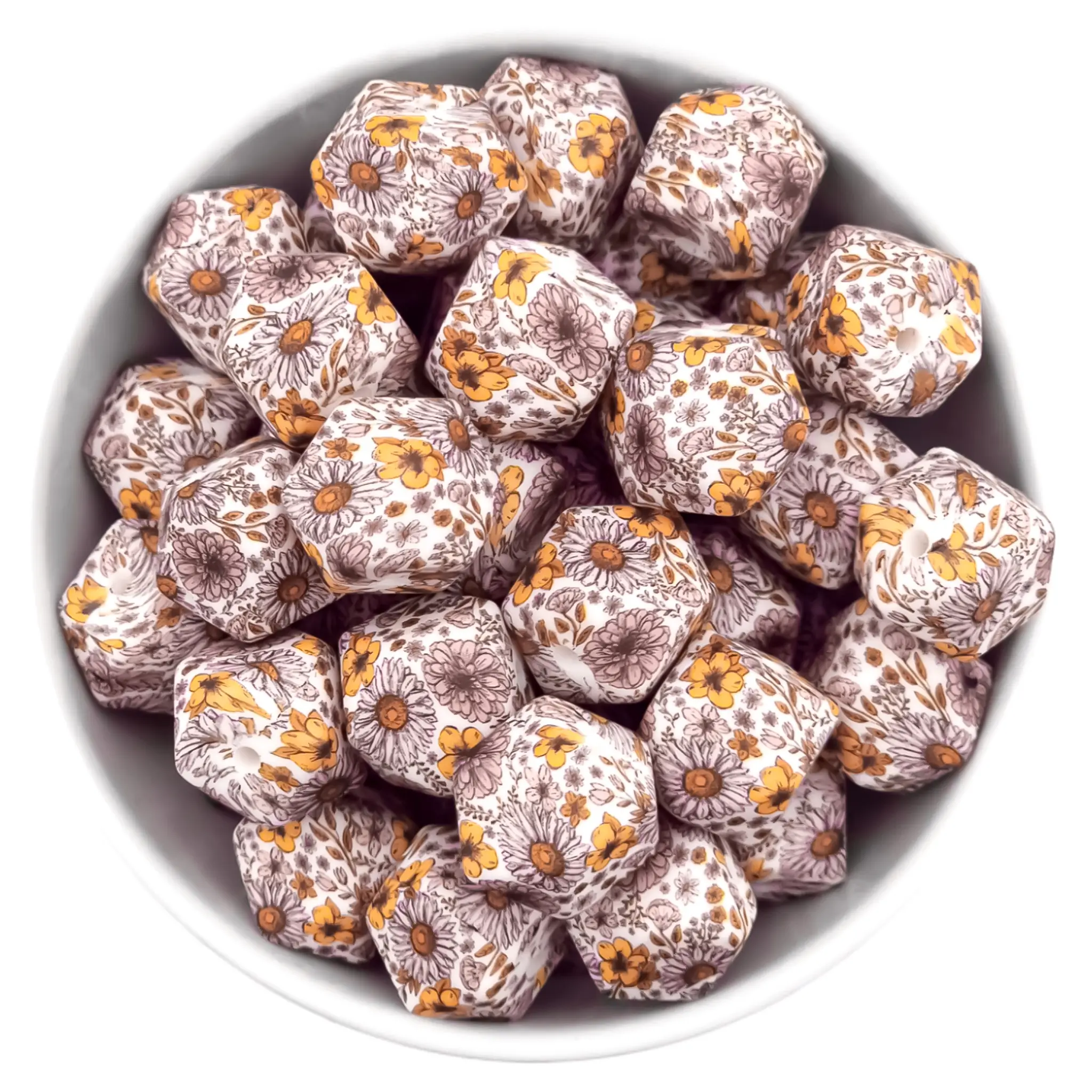 Startseite » Großhandel mit Silikonperlen – Business und Consumer » Silikonperlen – 14 mm – Sechseck – Ewiger Blumendruck