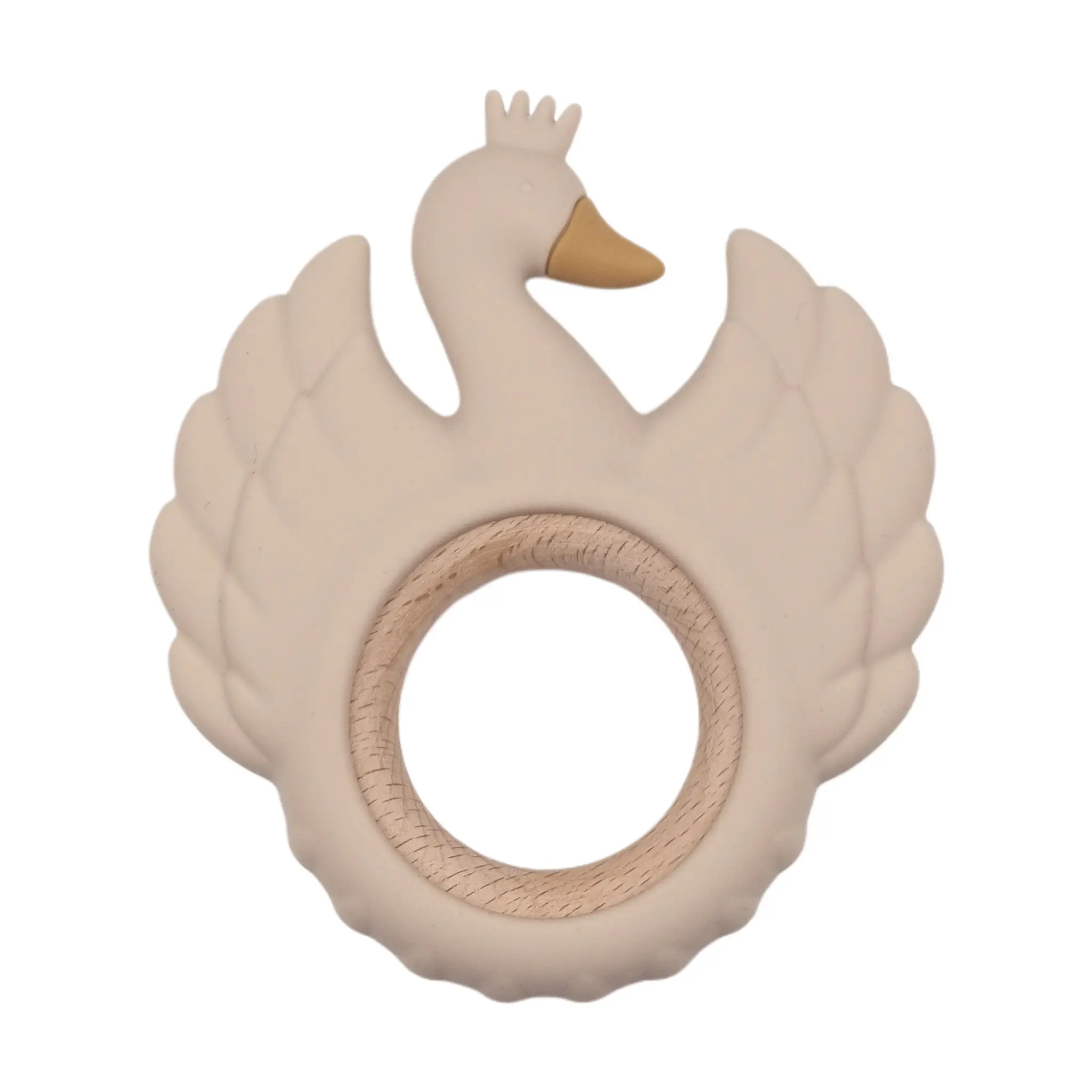 Beißfigur – Silikon und Holz – Schwan – Old Lace