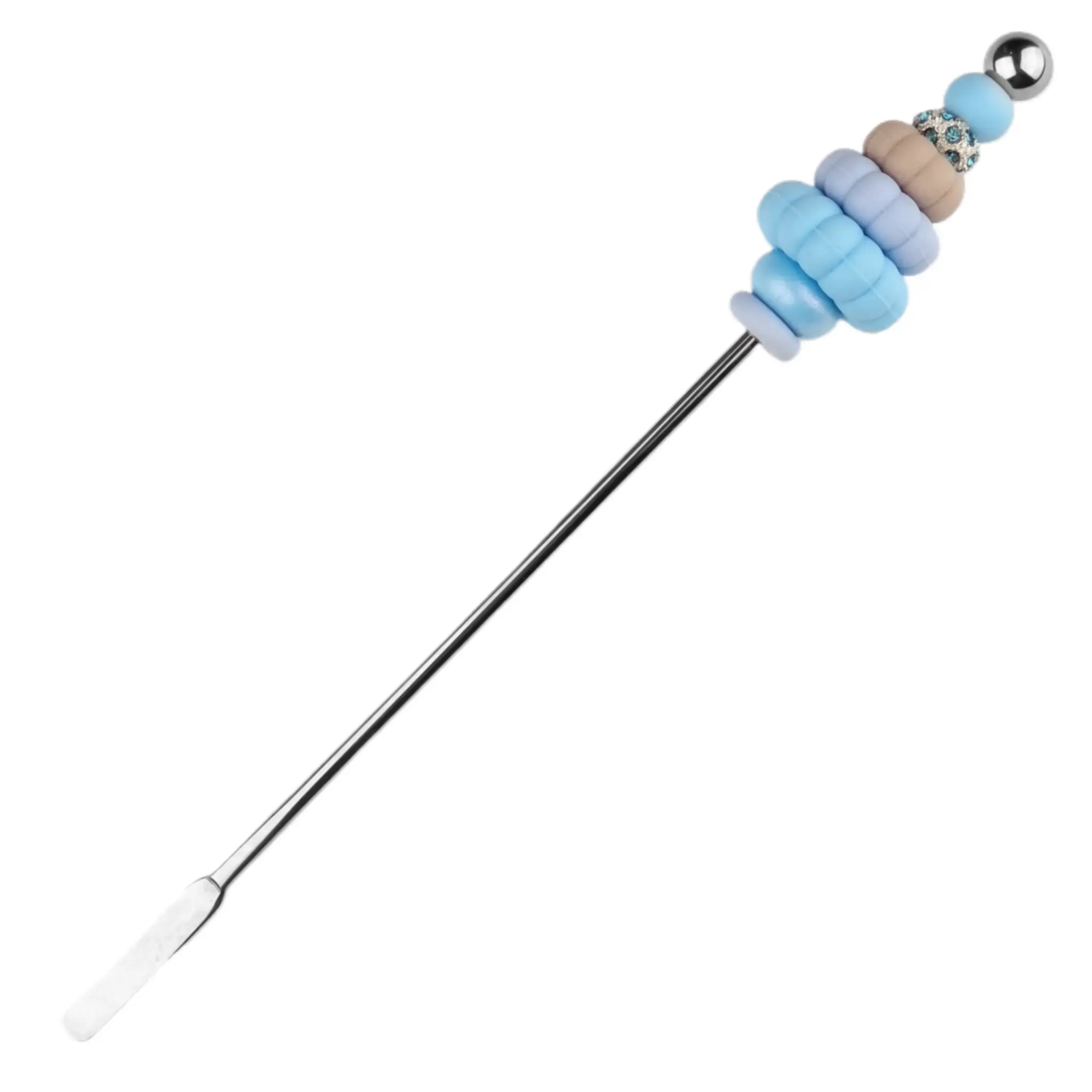Roerstaaf met Kerstboom Ice is heel eenvoudig te maken. Hoe moet je deze maken? Je draait aan de bovenkant de metalen stopper er af. Dit zit gewoon vast met een draaiconstructie en je rijgt vervolgens alle kralen er op. Hierna draai je de stopper er weer op! Ingewikkelder is het niet ;-)!
