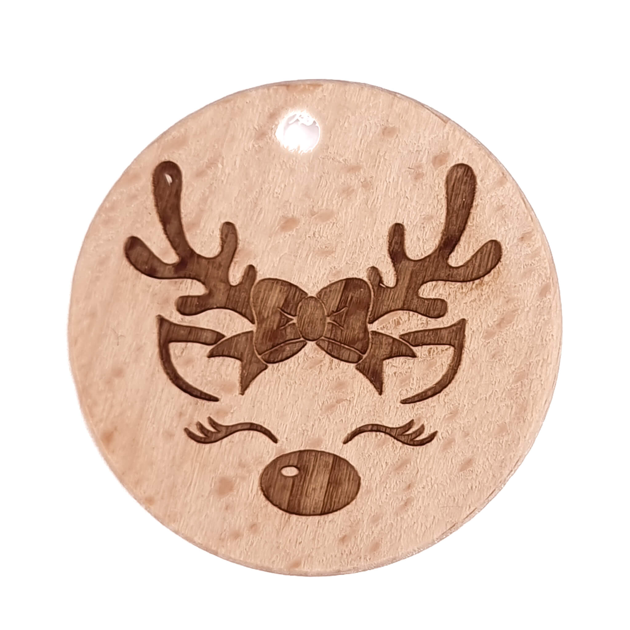 Beukenhout Schijfje – Gegraveerd – Rendier – 36 mm