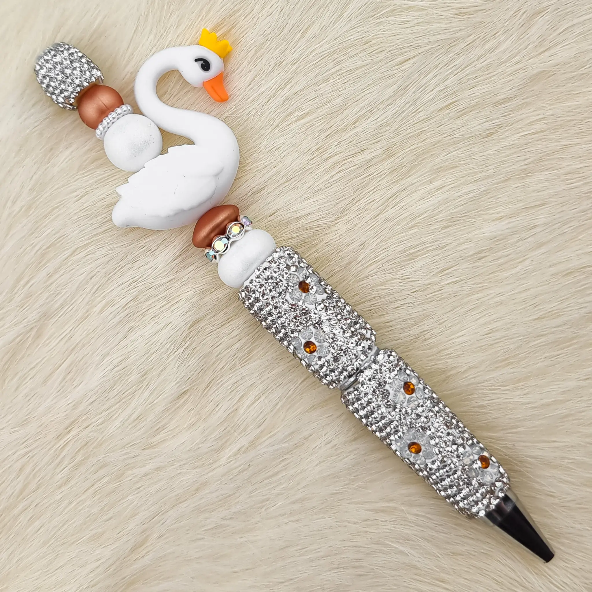 Home » Groothandel in Siliconen Kralen – Zakelijk en Particulier » DIY Kralen pen Sparkle Bloem – Zilver / Zwaan Wit