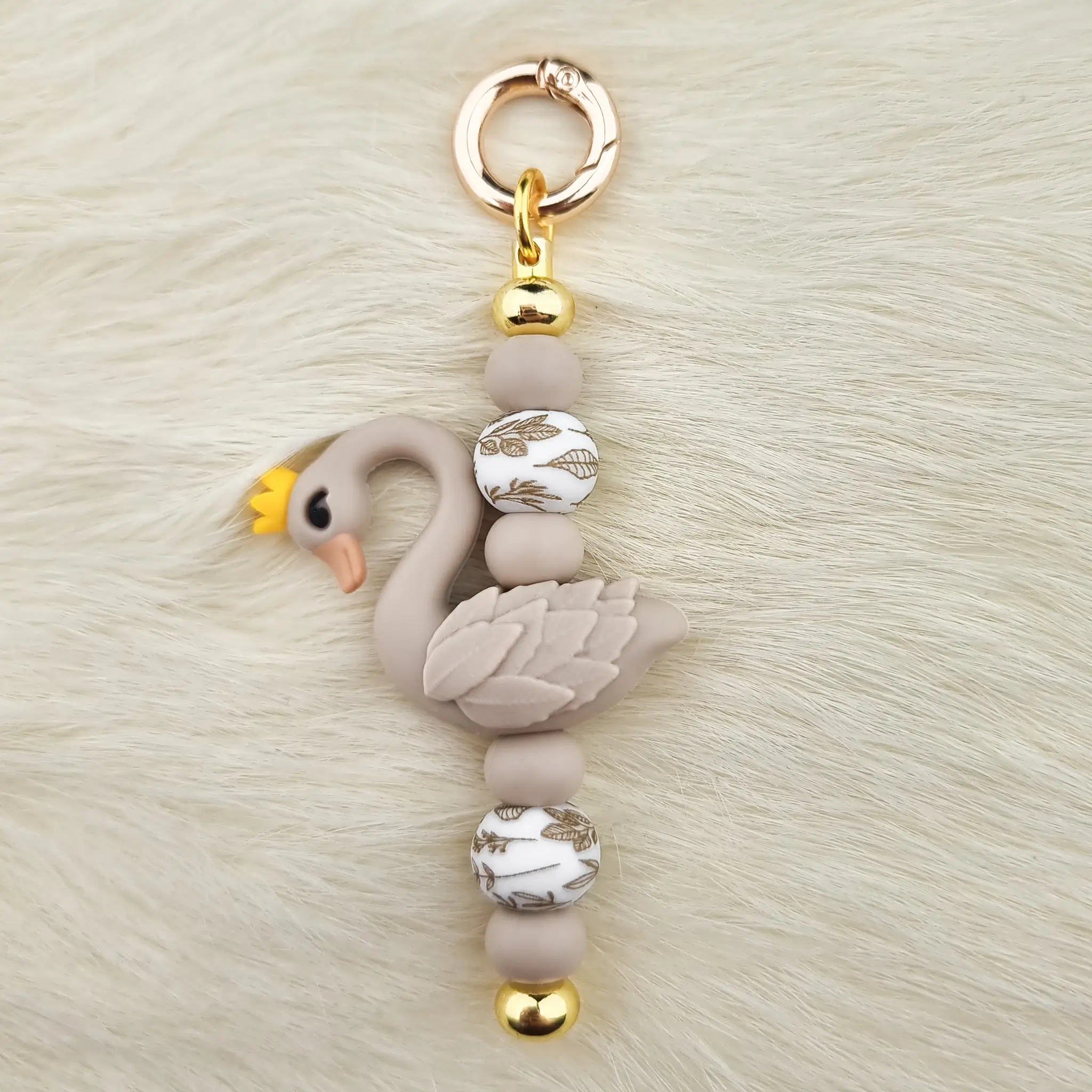 Home » Groothandel in Siliconen Kralen – Zakelijk en Particulier » DIY Sleutel / Telefoonhanger – Zwaantje – Taupe