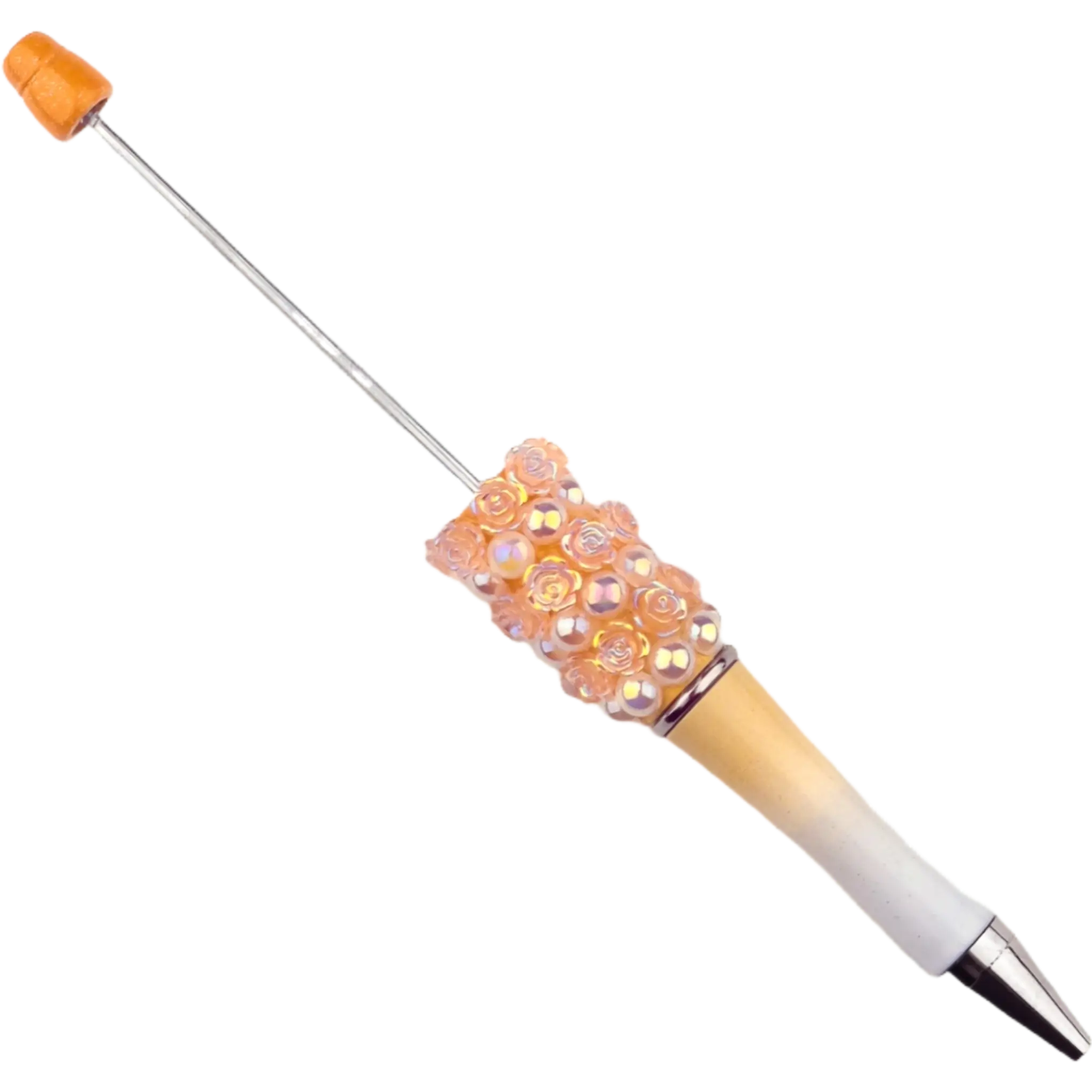 Home » Groothandel in Siliconen Kralen – Zakelijk en Particulier » Kralenpen Met Roosjes – Abrikoos Wit Verloop – Per 3 stuks